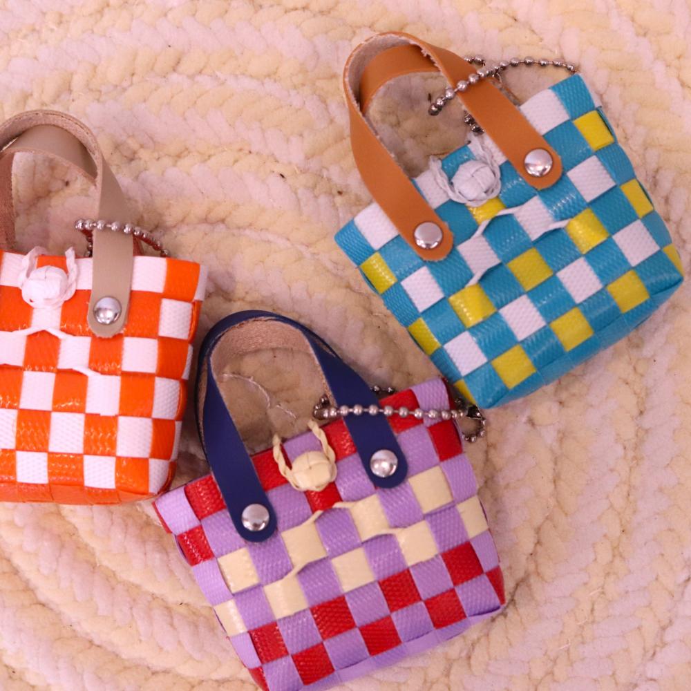 ミニサイズのプラかごを丁寧に編み上げたキーホルダーは、日常にさりげない可愛らしさを添えてくれる人気アイテム。