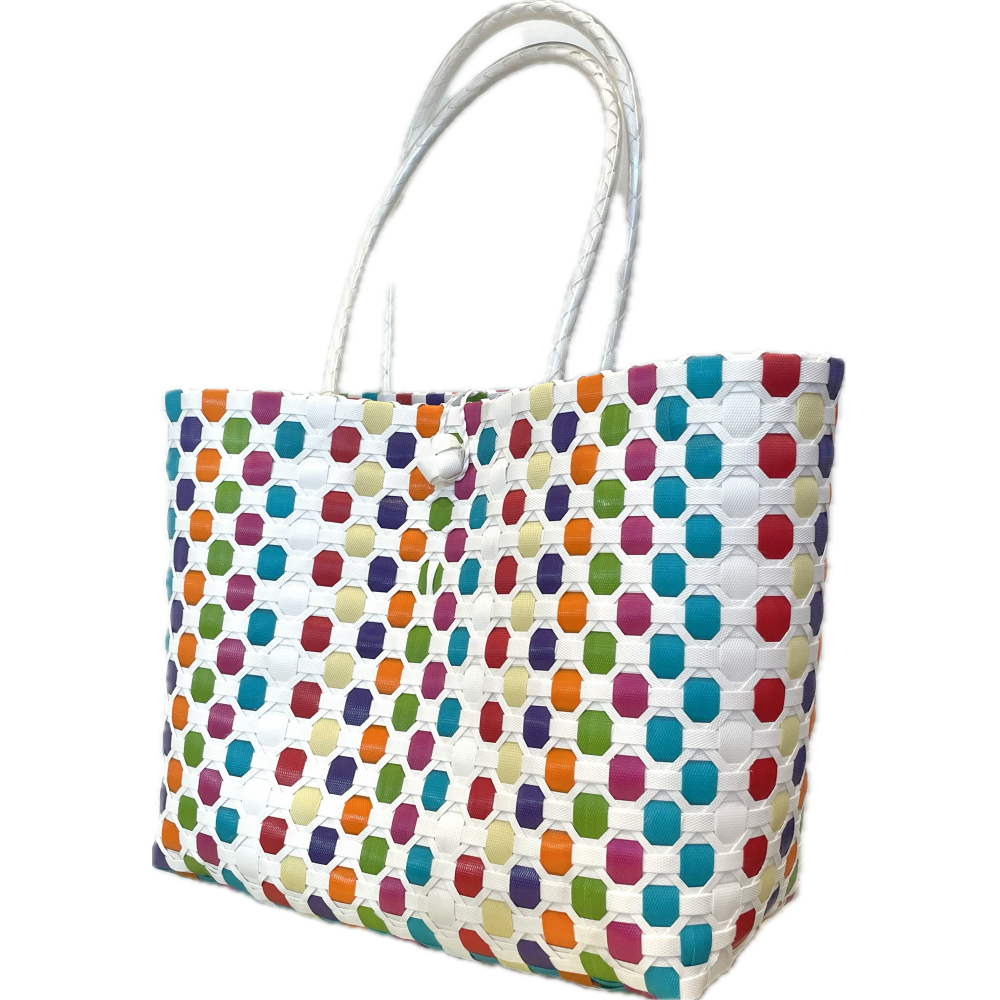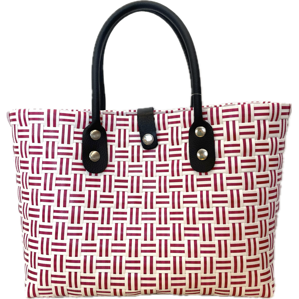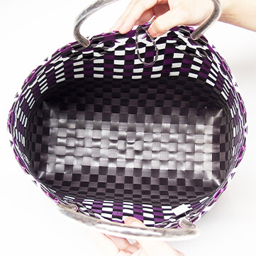 縦ひも(たて芯)の上下を交互に通す編み方です。シンプルでスッキリした見た目になり、底や側面など幅広く使われます。